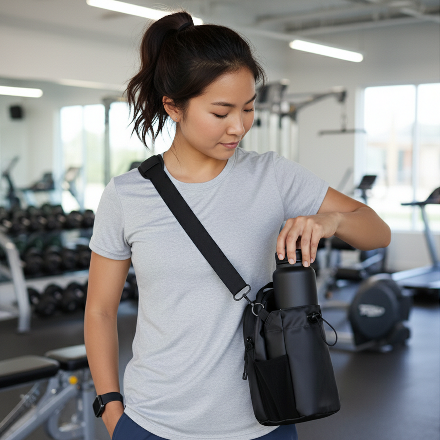 Wear it as a sling bag, free your hands, and move comfortably in and out of the gym.